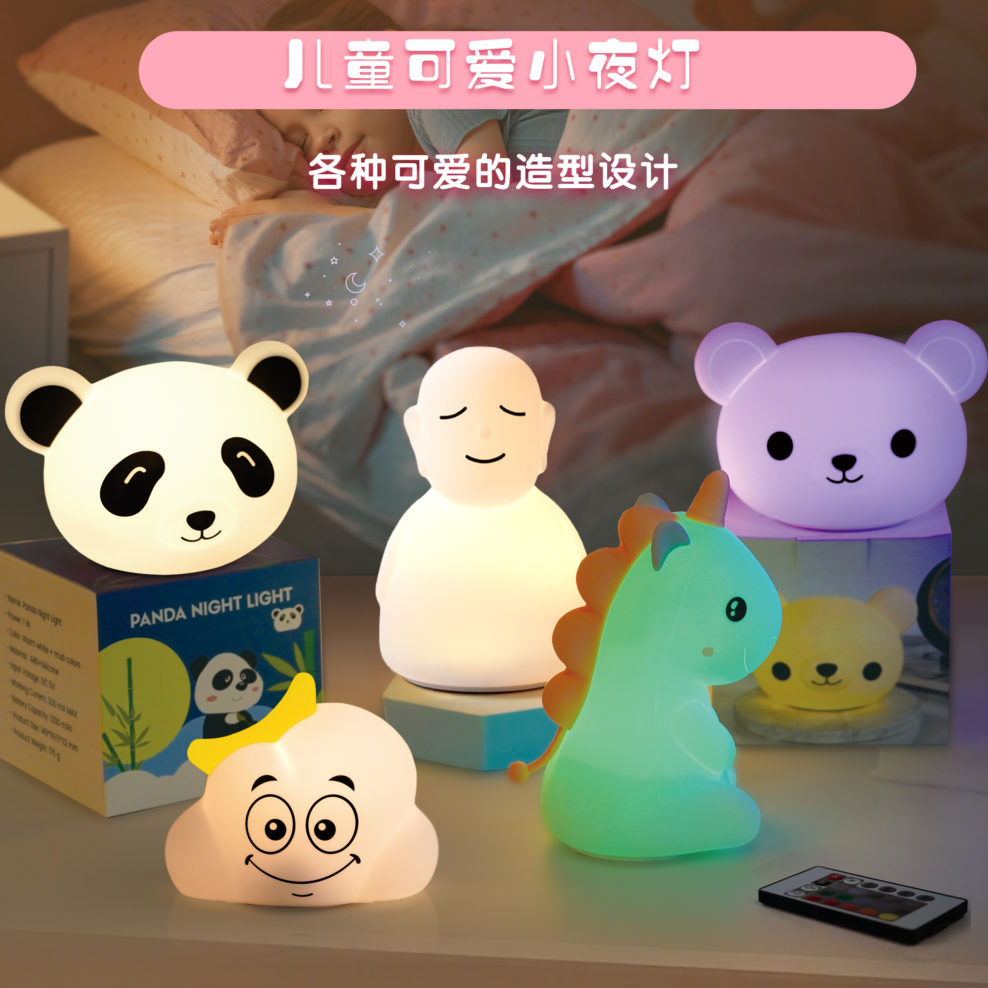 卡通造型柔光燈硅膠拍拍拍拍燈兒童護(hù)眼小夜燈