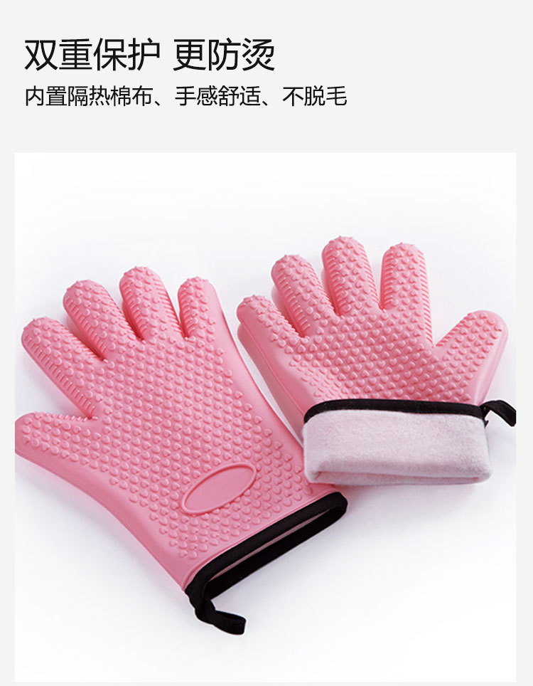 硅膠烘焙手套質(zhì)地柔軟,分指設(shè)計(jì),防滑防臟,內(nèi)置隔熱棉,有效保護(hù)雙手。