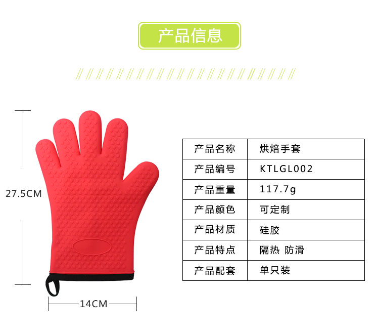 產(chǎn)品名稱(chēng)硅膠烘焙手套產(chǎn)品編號(hào)KTLGL002