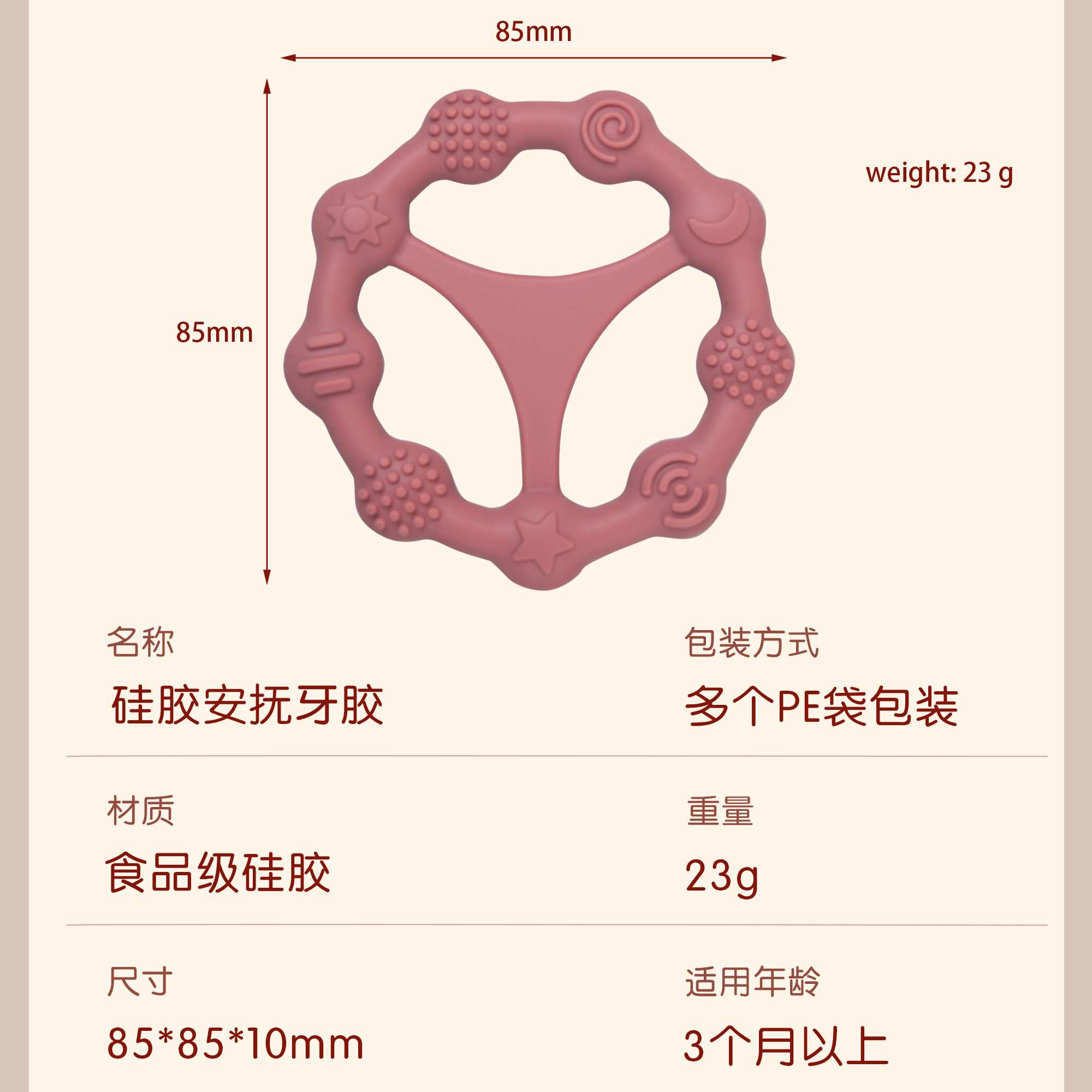 您的位置:首頁 > 產(chǎn)品中心 > 硅膠嬰童用品 > 牙膠 > 嬰兒硅膠牙膠防吃手食品級(jí)嬰兒玩具配件母嬰牙膠